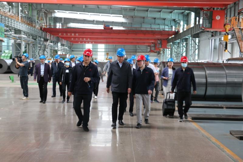 5月21日上午,觀摩團一行在市委常委、統(tǒng)戰(zhàn)部部長孟和巴特爾的帶領(lǐng)下來到我公司。公司總經(jīng)理佟國山、黨委書記劉欣、黨委副書記李曉杰在現(xiàn)場迎接,并陪同觀摩團參觀了公司年產(chǎn)200萬噸冷軋鍍鋅一期項目。劉欣書記代表公司詳細介紹了該項目的生產(chǎn)工藝流程,讓觀摩團成員了解了黑色的熱軋帶鋼蛻變?yōu)楣饬恋腻冧\帶鋼的過程。