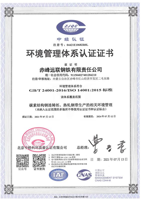 環(huán)境管理體系認(rèn)證證書