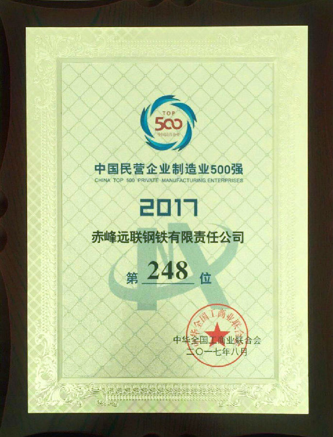 2024年,公司被中國工商聯(lián)評為“中國民營企業(yè)制造業(yè)500強(qiáng)第393位”